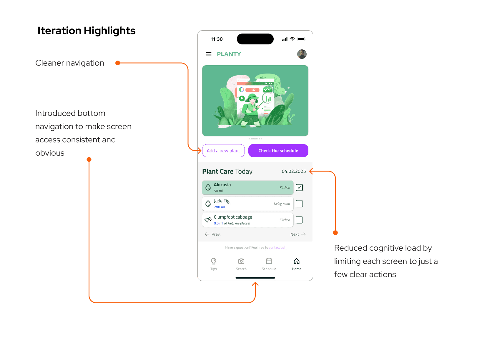 Three users couldn't locate the reminder editing flow. They navigated to the plant detail screen, looked around, and either guessed wrong or gave up. The entry point was nested under a secondary menu that seemed logical during design. It wasn't logical during use.