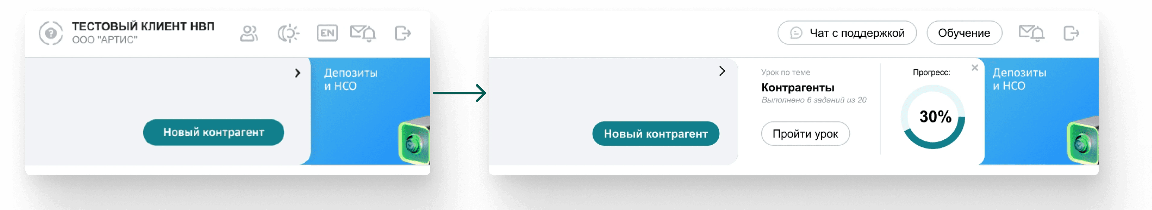 An educational widget was also embedded into each main category section — so users get a relevant course suggestion in context, not just in the learning tab.