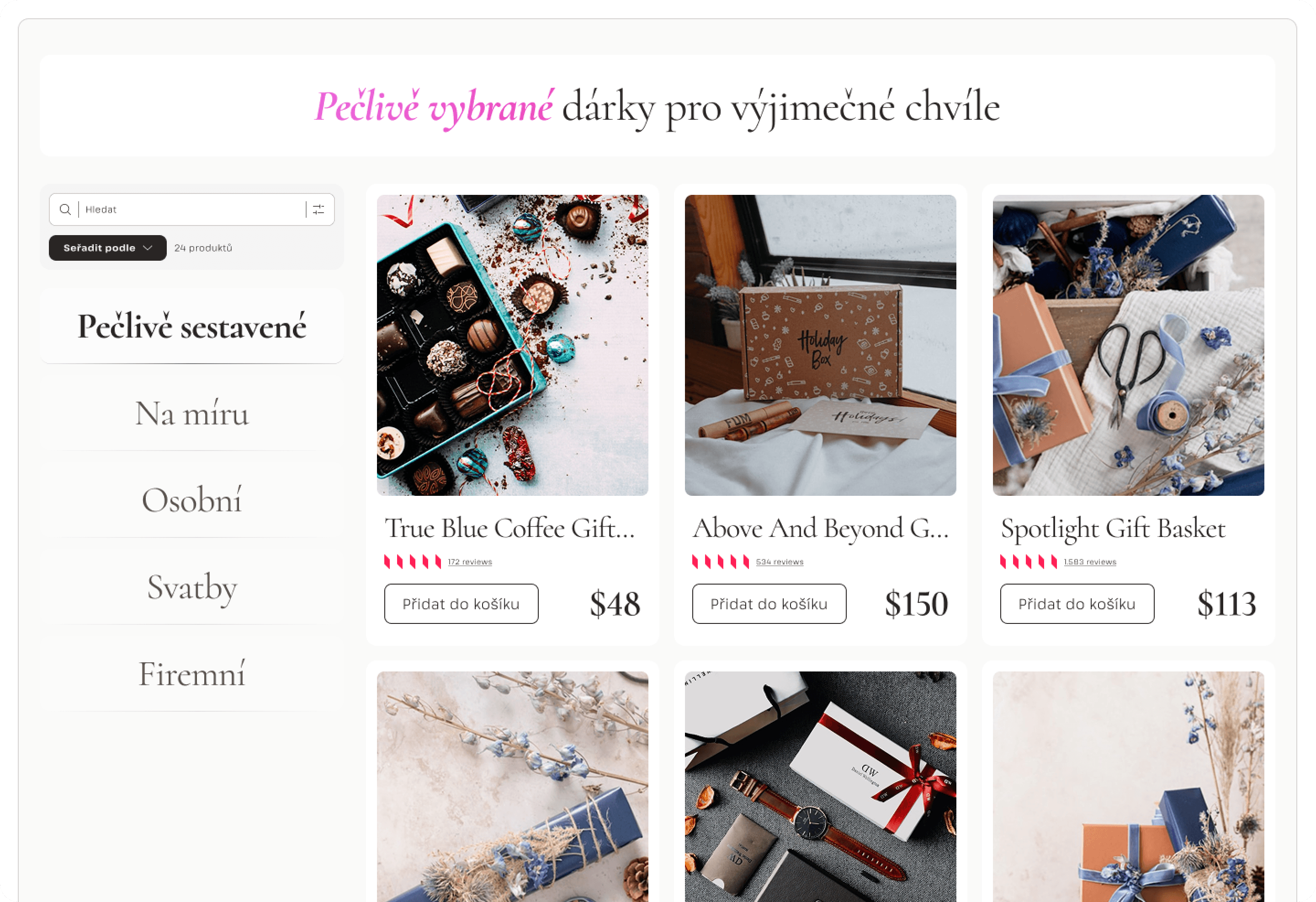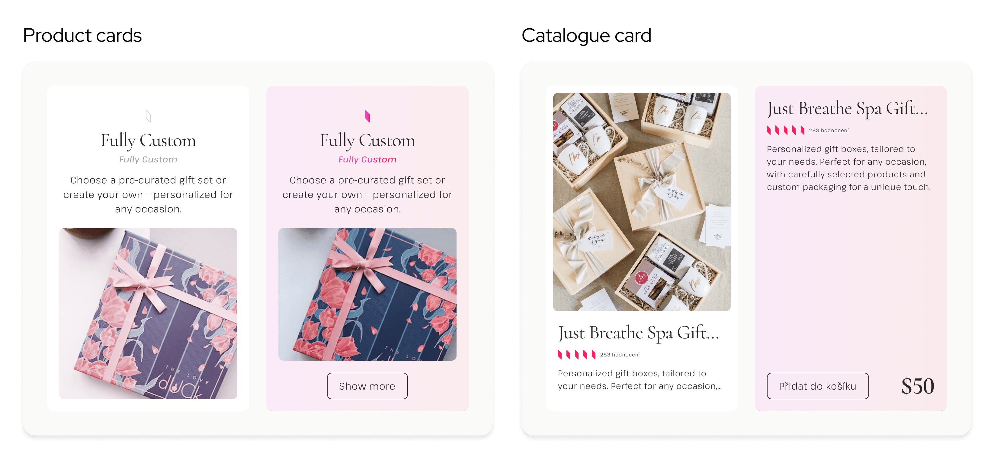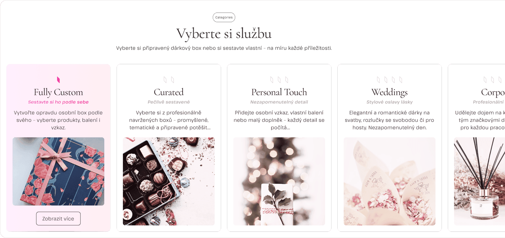The client had a clear concept: a platform for curated and custom gift boxes — not another flower delivery or generic e-shop, but something with emotional weight and taste.