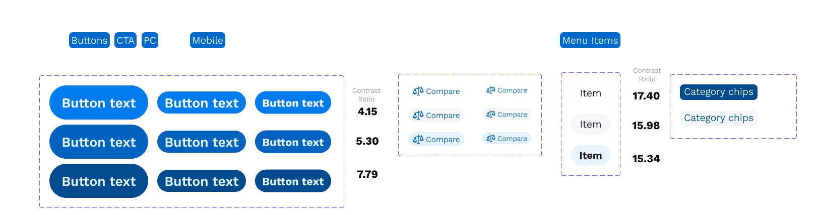 Modular components: buttons, chips, cards, input groups