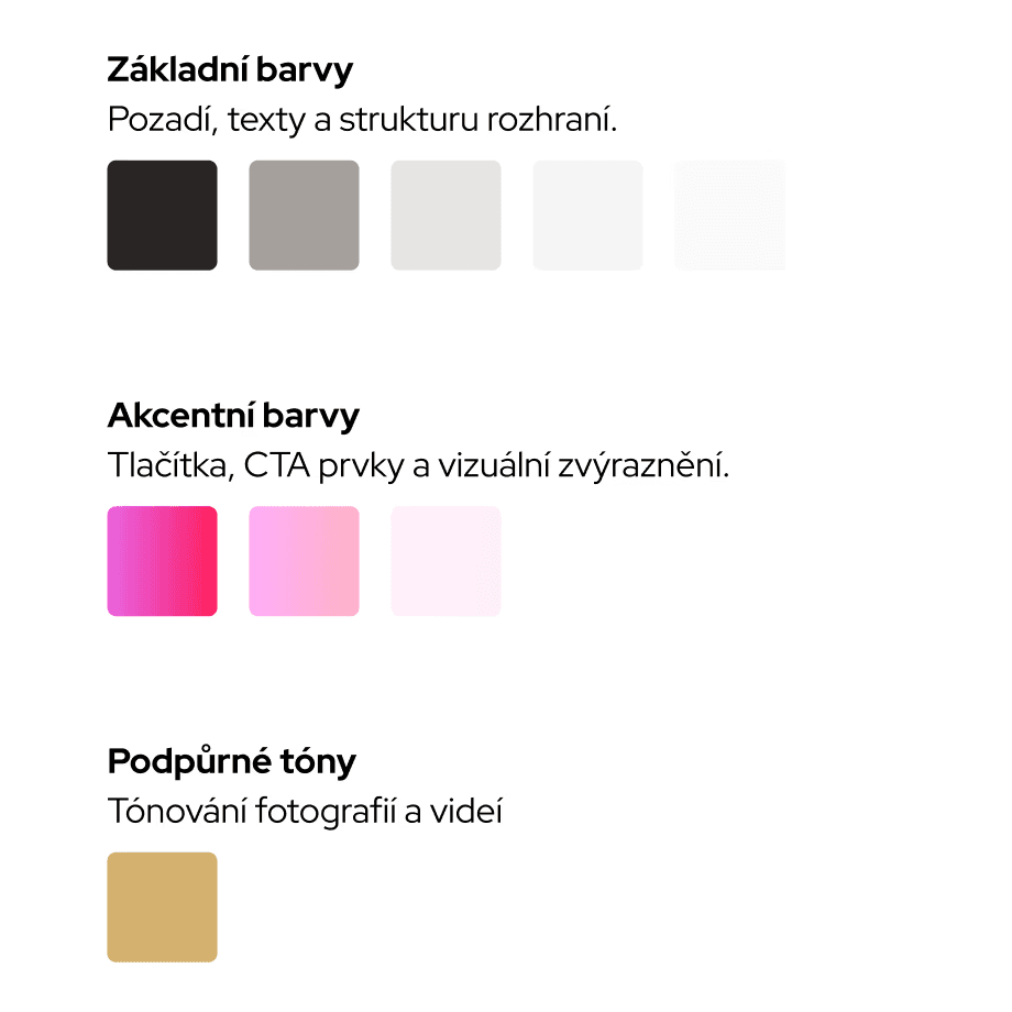A color palette built on Tailwind Stone neutrals, with Rose gradients as emotional accents