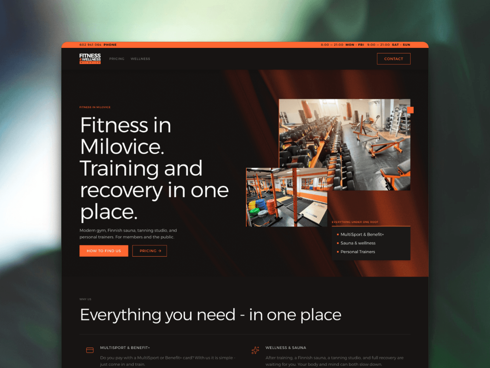 Nový web pro fitness centrum v Milovicích. Discovery hovor, design v Figma, build ve Framer. CMS pro rozvrh hodin a ceník. Web se začal zobrazovat na Googlu v prvních týdnech po spuštění.